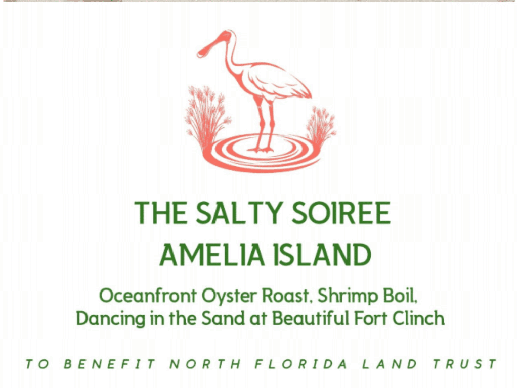 Join friends of North Florida Land Trust for the Salty Soirée, an evening to celebrate and support NFLT’s mission to conserve and protect North Florida’s natural landscapes and environment. We’ll be honoring the extraordinary donation of 388 acres of pristine land adjacent to Fort Clinch State Park, gifted by Jack and Kathleen Thornton and creating a lasting legacy for future generations.
