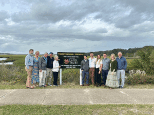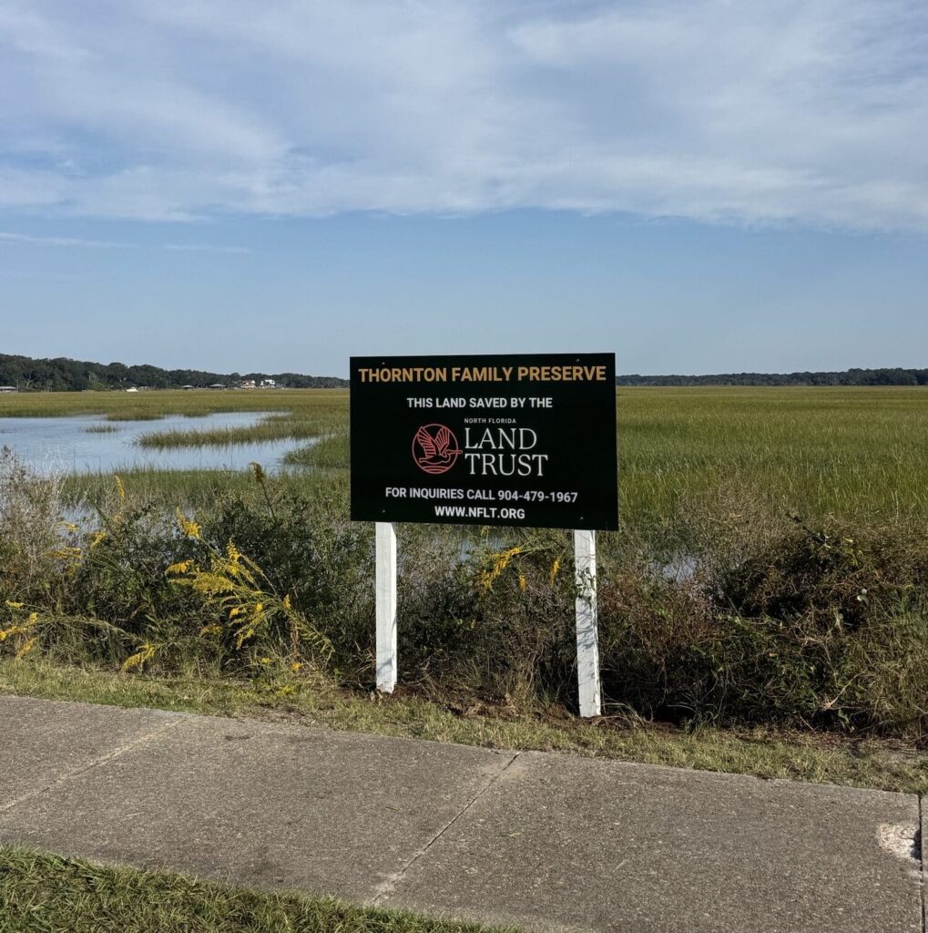 The Thornton family received a standing ovation for their generous donation of what is now known as the Thornton Family Preserve. The property is adjacent to Fort Clinch and runs about two miles between the state park and Egan’s Creek. The donation helps to protect the state park and ensures this land will remain in its natural state. Before the event, the Thornton family joined NFLT at a newly erected sign inside Fort Clinch State Park that recognizes the family’s contribution to conservation.