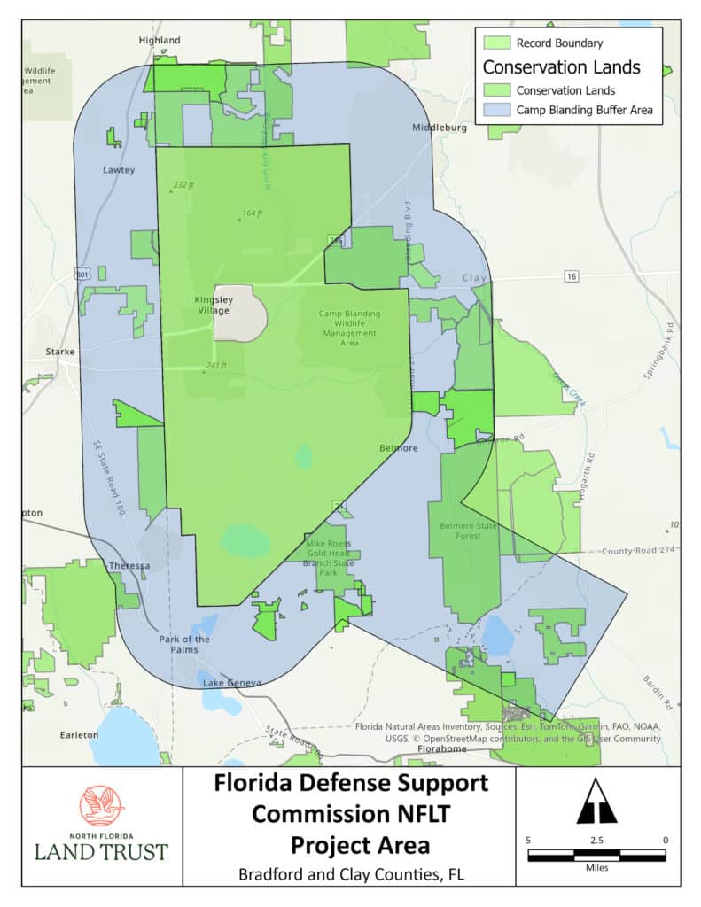 North Florida Land Trust (NFLT) has been awarded a $550,000 grant from the Florida Defense Support Commission (FDSC) to prevent incompatible land development and encroachment around Camp Blanding. FloridaCommerce recently announced the grant, which is among $2.6 million the state designated to organizations to strengthen Florida’s military communities.