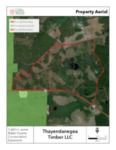 North Florida Land Trust (NFLT) has played a part in the permanent preservation of approximately 1,685 acres in Baker County. The nonprofit land conservation organization helped bridge funding sources to purchase a conservation easement on the Thayendanegea Timber land, a working timber property in the Ocala to Osceola (O2O) Wildlife Corridor.