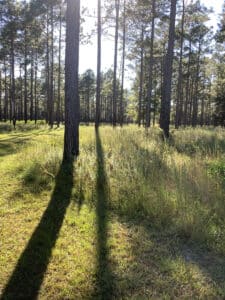 The property is primarily managed for silviculture, with prescribed burns used to maintain an open understory and promote a rich diversity of native plant species. Wetlands are scattered throughout the landscape, and the land provides an important riparian buffer along Cedar Creek as it winds through the tract. Wildlife management efforts support healthy populations of deer, turkey, dove, and waterfowl, and the property is also actively used for native game hunting.